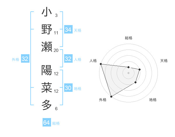 小野瀬 陽菜多さんの外格は32画の5点!