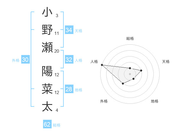 小野瀬 陽菜太さんを姓名の画数から五運を鑑定