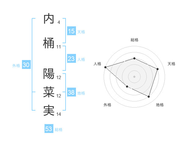 内桶 陽菜実さんの総格は53画の3点!