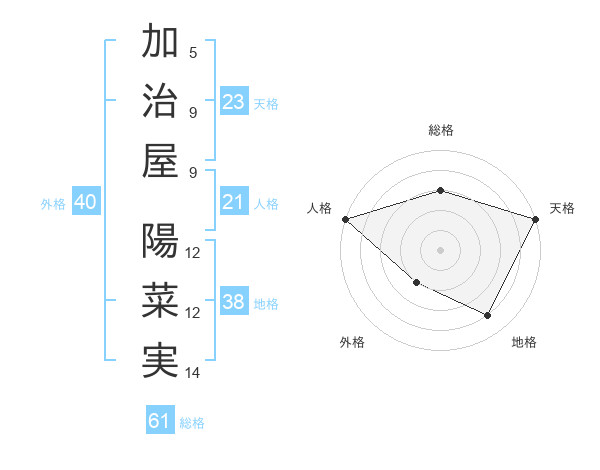 加治屋 陽菜実さんの総格は61画の3点