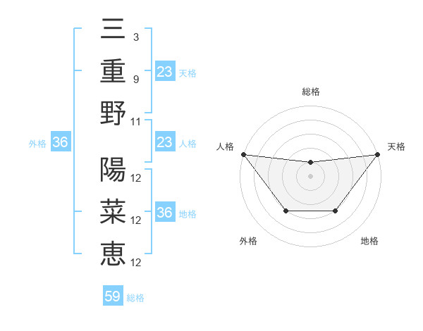 三重野 陽菜恵さんを姓名の画数から五運を鑑定