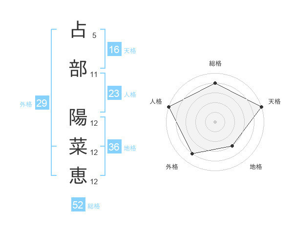 占部 陽菜恵さんを姓名の画数から五運を鑑定