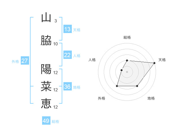 山脇 陽菜恵さんを姓名の画数から五運を鑑定