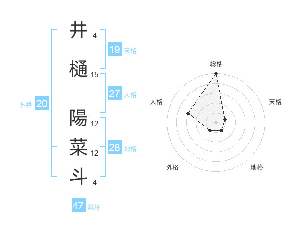 井樋 陽菜斗さんの総格は47画の5点!