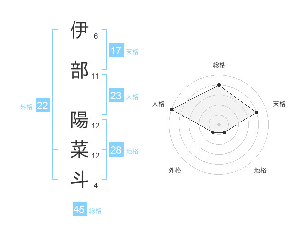 伊部 陽菜斗さんの総格は45画の4点!