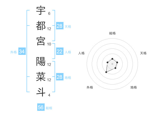 宇都宮 陽菜斗さんの総格は56画の1点!
