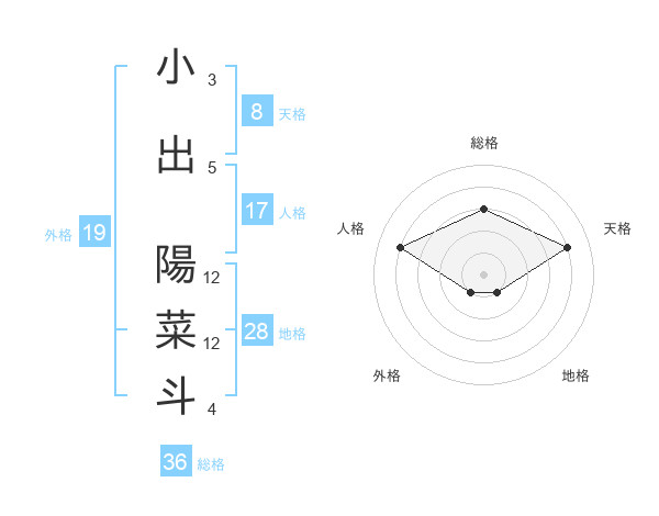 小出 陽菜斗さんの天格は8画の4点!