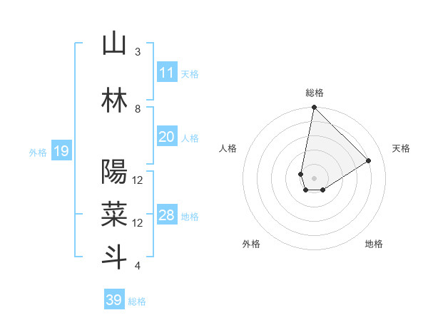 山林 陽菜斗さんの総格は39画の5点!