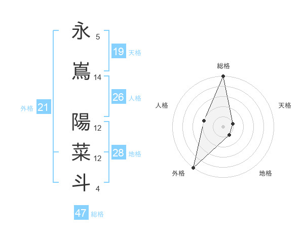 永嶌 陽菜斗さんを姓名の画数から五運を鑑定