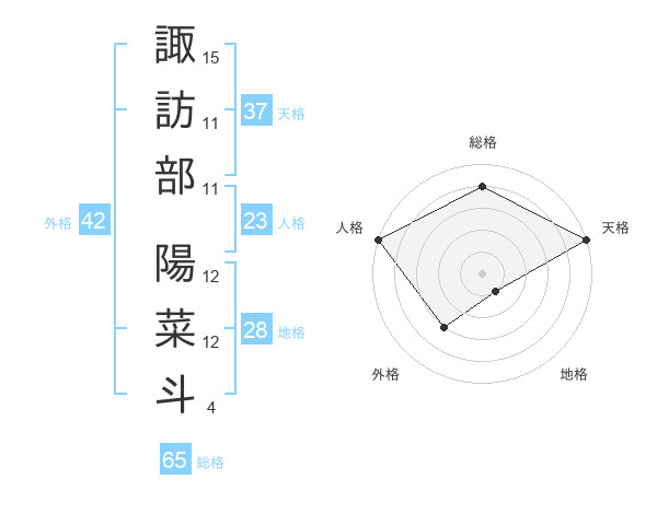 諏訪部 陽菜斗さんの総格は65画の4点!