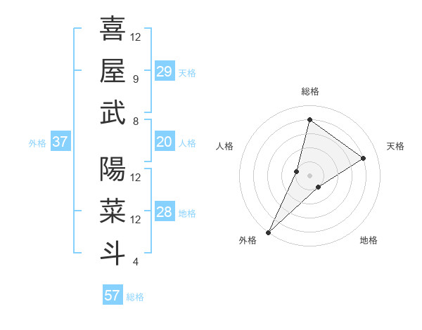 喜屋武 陽菜斗さんの外格は37画の5点!