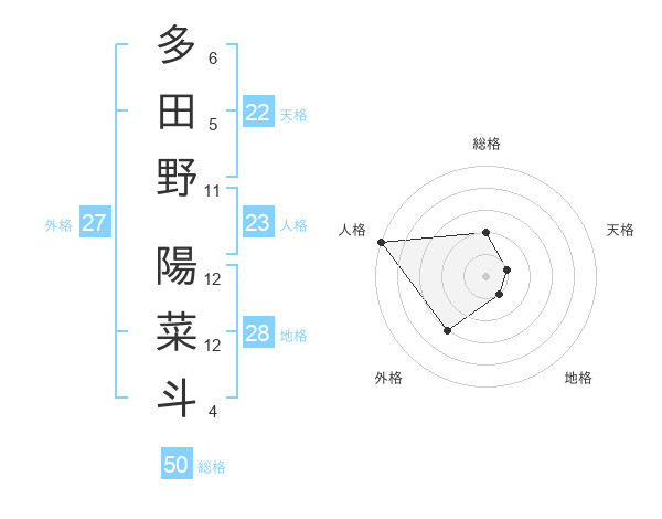 多田野 陽菜斗さんを姓名の画数から五運を鑑定