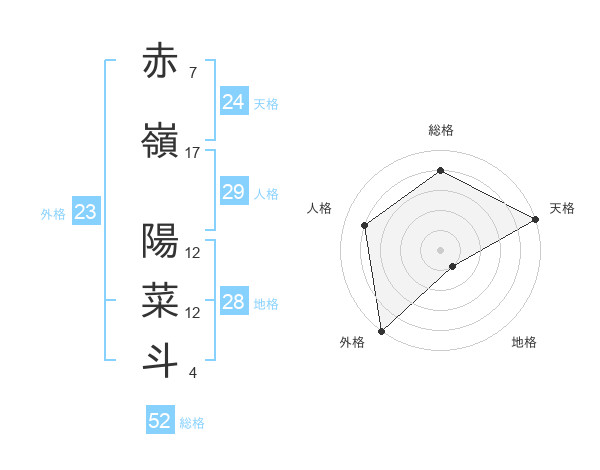 赤嶺 陽菜斗さんの天格は24画の5点!