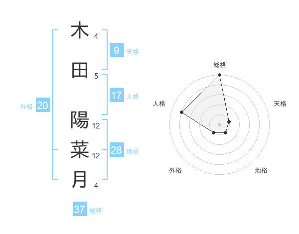 木田 陽菜月さんの総格は37画の5点!