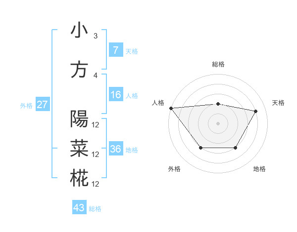 小方 陽菜椛さんを姓名の画数から五運を鑑定