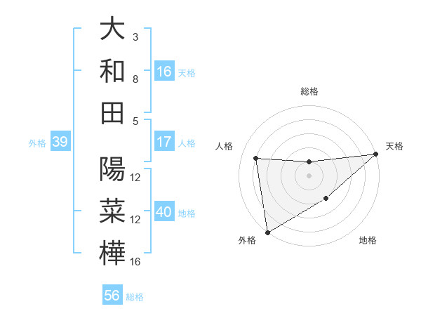 大和田 陽菜樺さんを姓名の画数から五運を鑑定