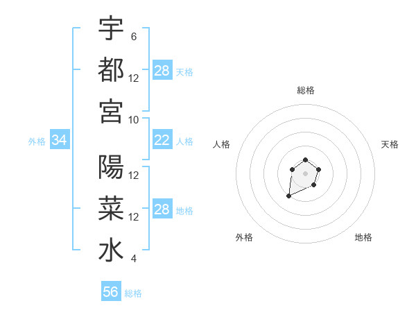 宇都宮 陽菜水さんを姓名の画数から五運を鑑定