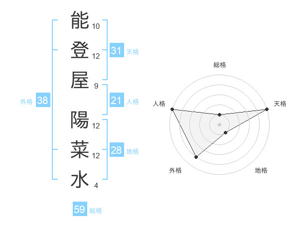 能登屋 陽菜水さんを姓名の画数から五運を鑑定