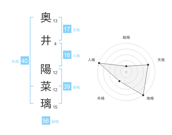 奥井 陽菜璃さんを姓名の画数から五運を鑑定