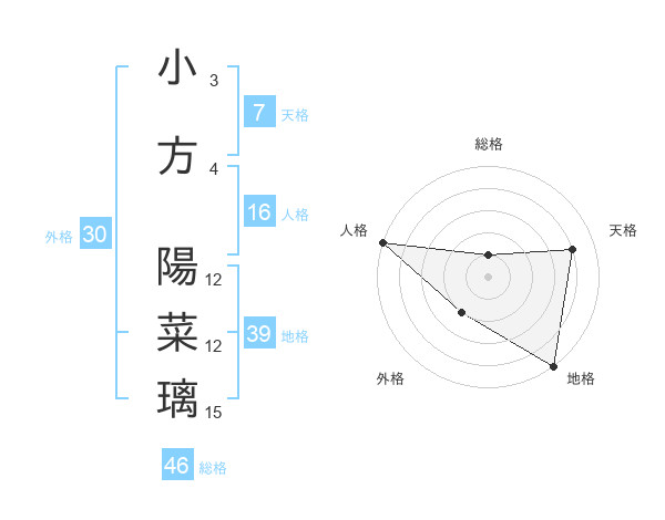 小方 陽菜璃さんの天格は7画の4点!