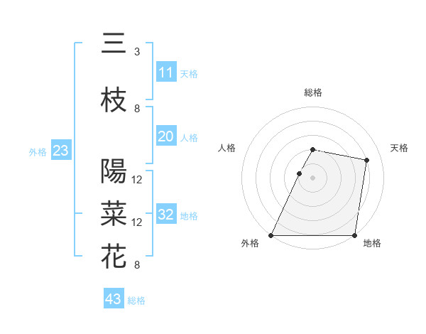 三枝 陽菜花さんを姓名の画数から五運を鑑定