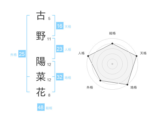 古野 陽菜花さんを姓名の画数から五運を鑑定