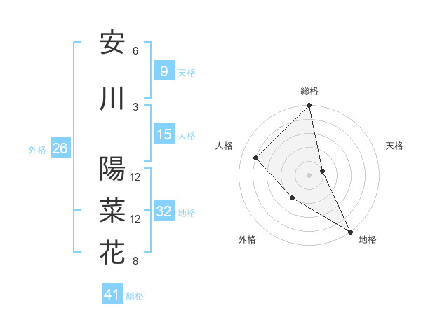 安川 陽菜花さんの総格は41画の5点!
