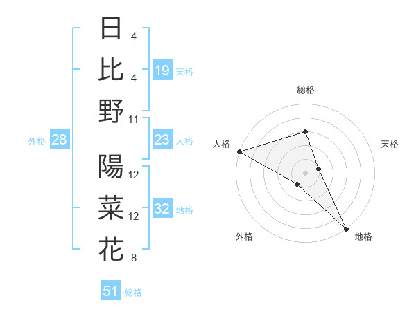 日比野 陽菜花さんを姓名の画数から五運を鑑定