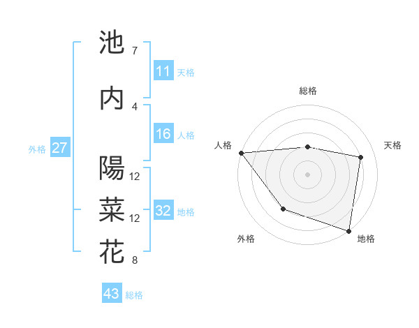 池内 陽菜花さんを姓名の画数から五運を鑑定