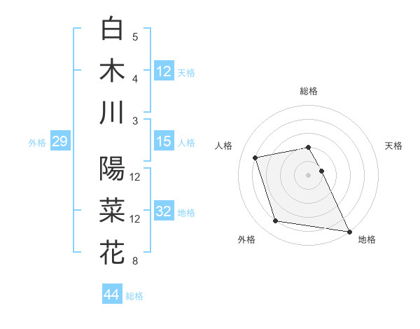 白木川 陽菜花さんの地格は32画の5点!