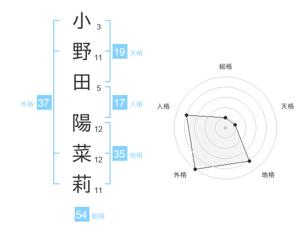 小野田 陽菜莉さんを姓名の画数から五運を鑑定