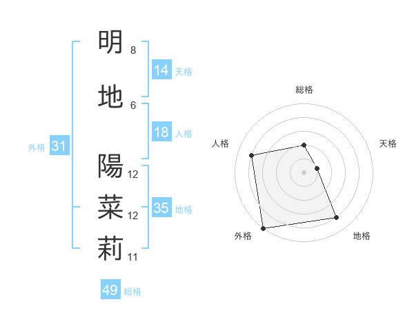 明地 陽菜莉さんを姓名の画数から五運を鑑定