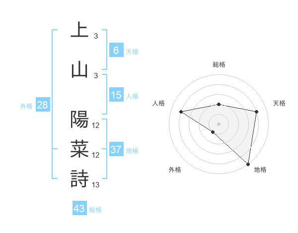 上山 陽菜詩さんの総格は43画の2点!