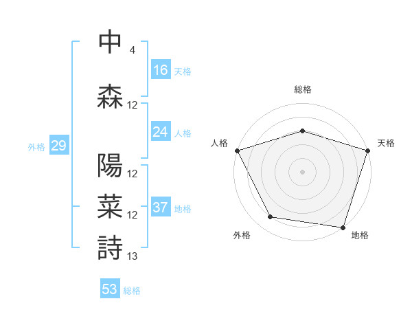 中森 陽菜詩さんを姓名の画数から五運を鑑定