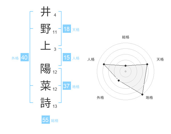 井野上 陽菜詩さんを姓名の画数から五運を鑑定