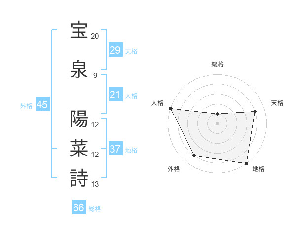 宝泉 陽菜詩さんを姓名の画数から五運を鑑定