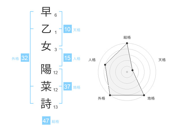 早乙女 陽菜詩さんを姓名の画数から五運を鑑定