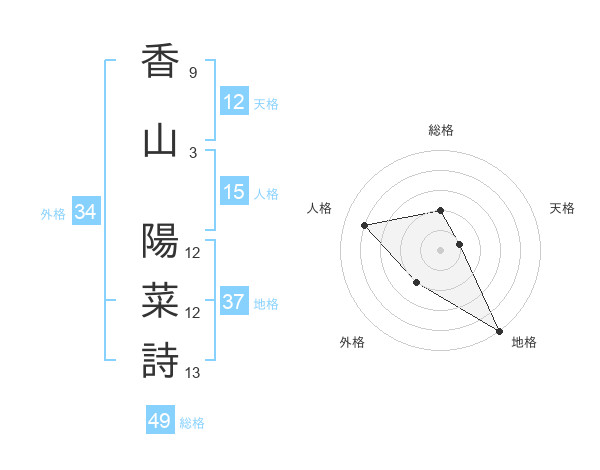 香山 陽菜詩さんを姓名の画数から五運を鑑定
