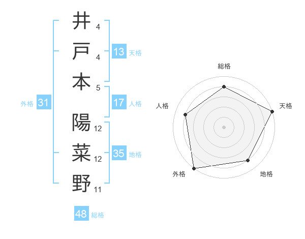 井戸本 陽菜野さんを姓名の画数から五運を鑑定