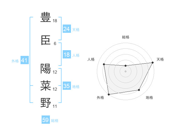 豊臣 陽菜野さんを姓名の画数から五運を鑑定