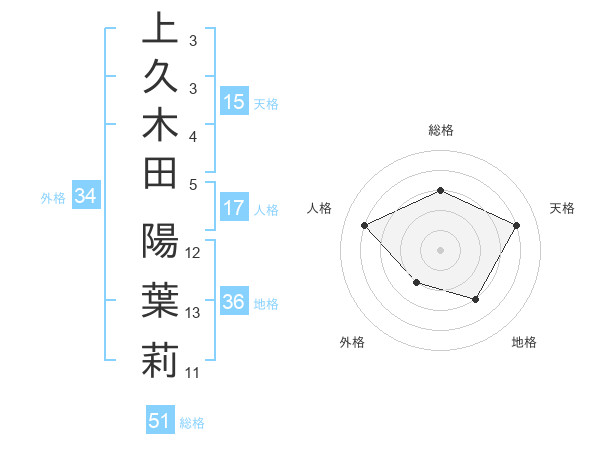 上久木田 陽葉莉さんの総格は51画の3点!