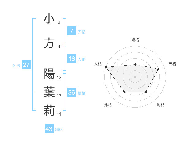 小方 陽葉莉さんの外格は27画の3点!