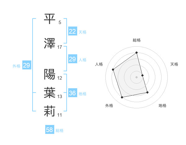 平澤 陽葉莉さんを姓名の画数から五運を鑑定