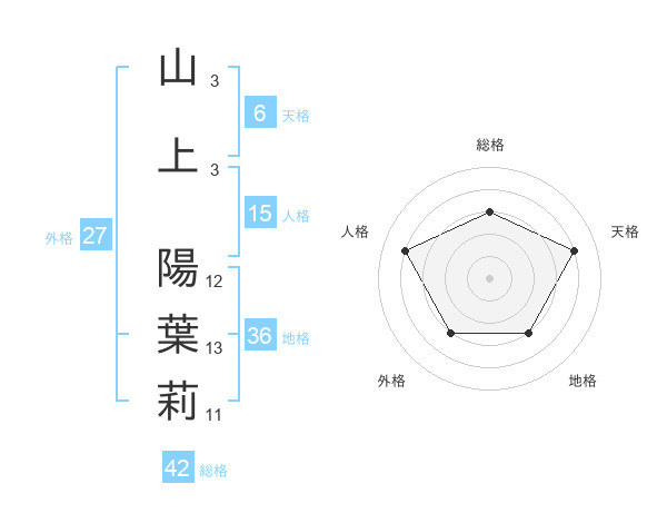 山上 陽葉莉さんを姓名の画数から五運を鑑定