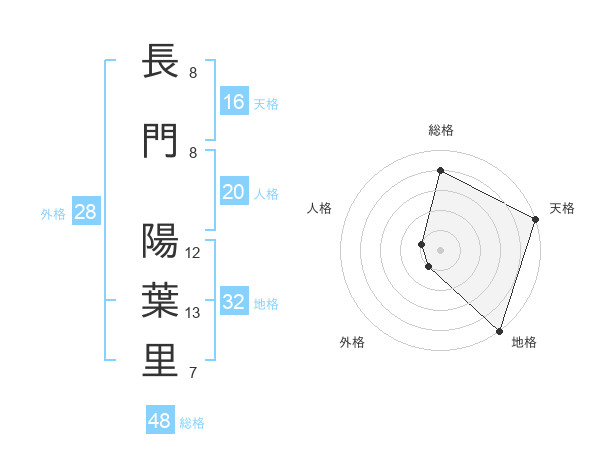 長門 陽葉里さんの天格は16画の5点
