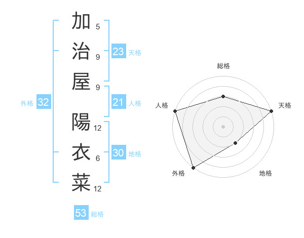 加治屋 陽衣菜さんを姓名の画数から五運を鑑定