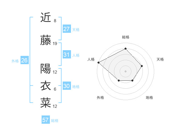 近藤 陽衣菜さんを姓名の画数から五運を鑑定