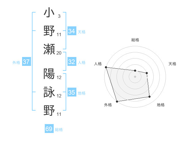 小野瀬 陽詠野さんを姓名の画数から五運を鑑定