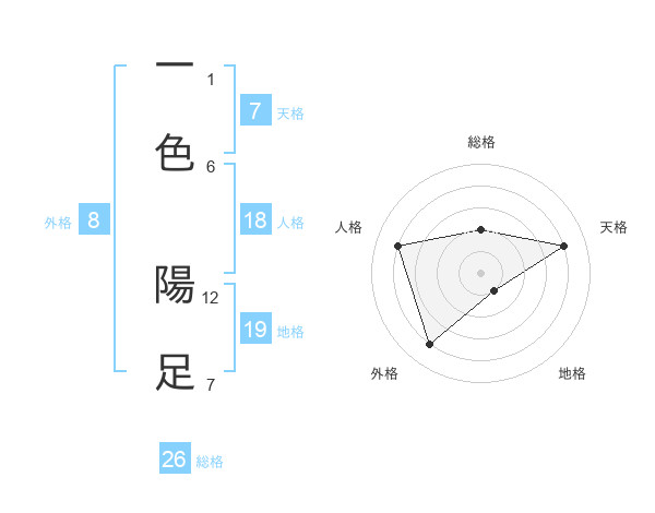 一色 陽足さんの総格は26画の2点