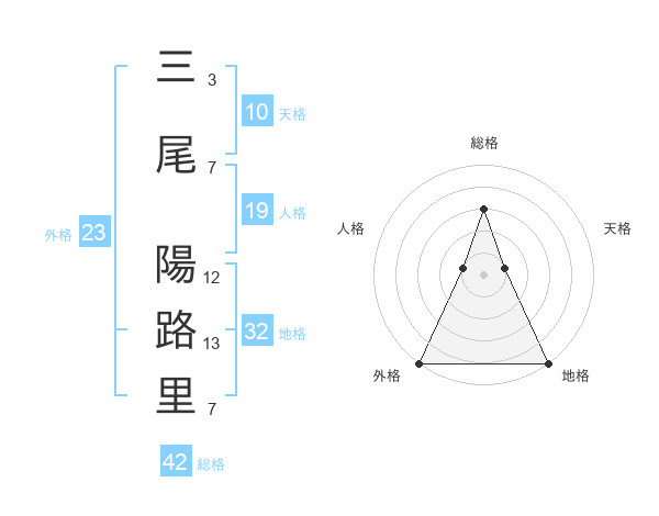 三尾 陽路里さんを姓名の画数から五運を鑑定